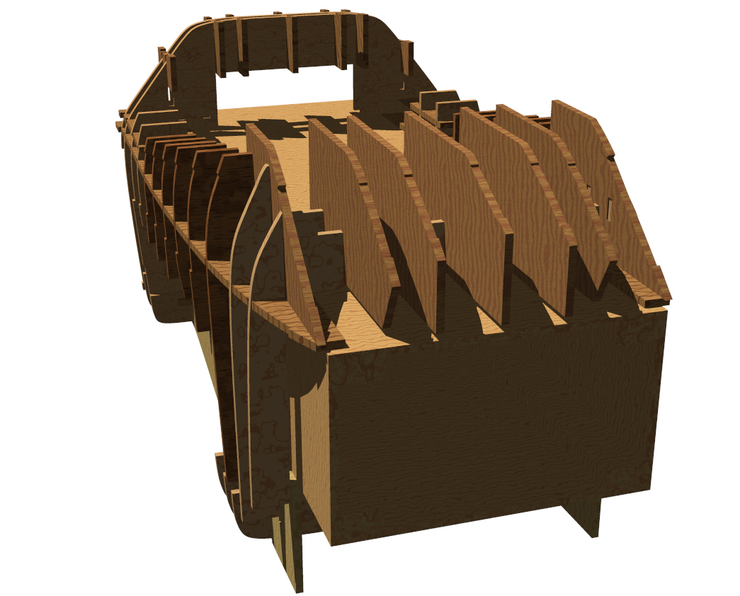 Jigissä hieman eri sävyiset puut eri levyissä on vain helpottamaan hahmotusta. Oikeasti kaikki jigin levypalat on samasta vaneerista leikattu.